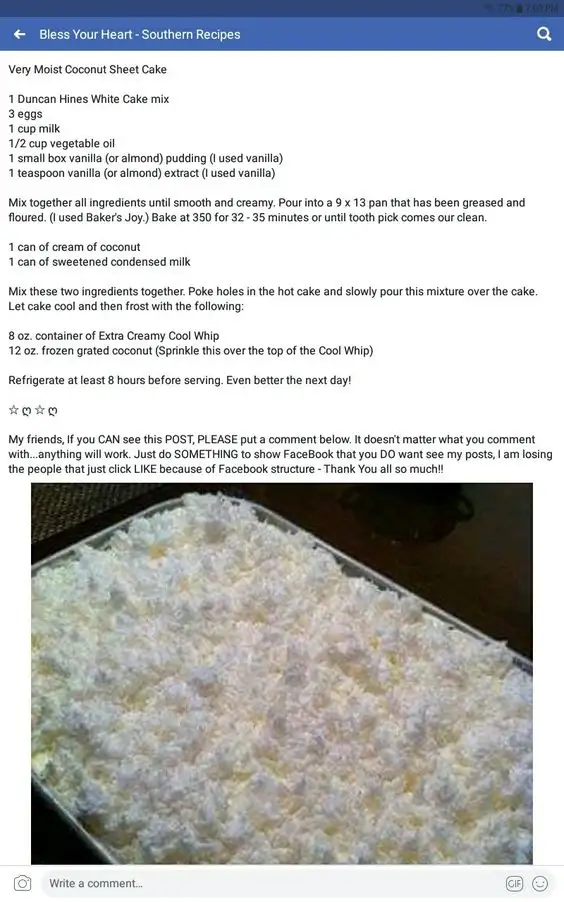 Made with white cake mix and vanilla pudding it's fluffy layers infused with coconut flavor, topped by creamy frosting, evoke festive joy, making it a perfect treat to savor during the holiday season.